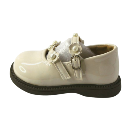 Elegant LILREDFOX black patent Mary Jane shoes for kids' party wear. Features double pearl-flower straps, a soft comfortable midsole, and a non-slippery rubber sole for safe, sophisticated style. LILREDFOX Formal Style: Classic Mary Jane "Belly" design in high-shine black patent finish, perfect for party wear., Luxurious Detailing: Adorned with double straps featuring beautiful pearl-centered flower appliqués. , All-Day Comfort: Includes a soft, comfortable midsole for superior cushioning and wearability., Secure Footing: Built with a durable, thick, and non-slippery rubber sole for excellent traction., Easy Fit: Adjustable double-strap design ensures a secure and snug fit for active children