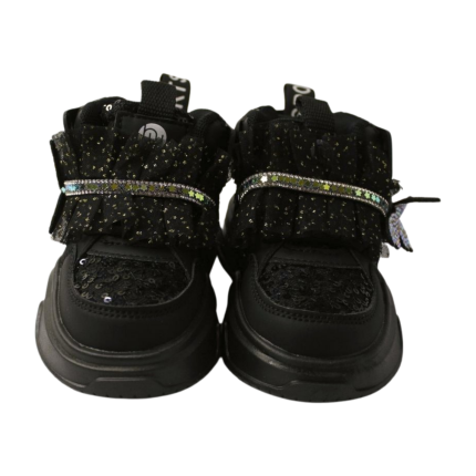 “Flutter Dreamer Glittered High-Ankle Sneakers – Black”
