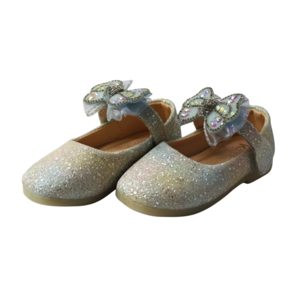 Let your child make a memorable entrance with the LILREDFOX Shimmering Silver Lace & Crystal Bow Mary Jane Flats. These