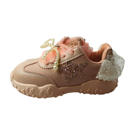 Introduce a touch of whimsical elegance to your child’s wardrobe with the LILREDFOX Pearl & Glitter Star Low-Top Sneakers. These