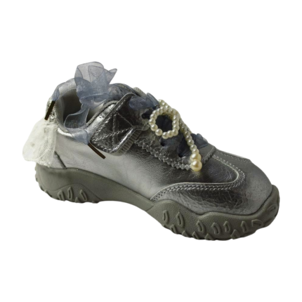 “Princess Aurora Silver Velcro Sneakers – Glitter Star & Pearl Bow”