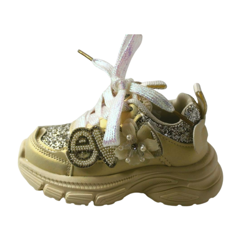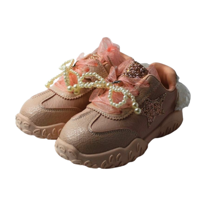 Introduce a touch of whimsical elegance to your child’s wardrobe with the LILREDFOX Pearl & Glitter Star Low-Top Sneakers. These