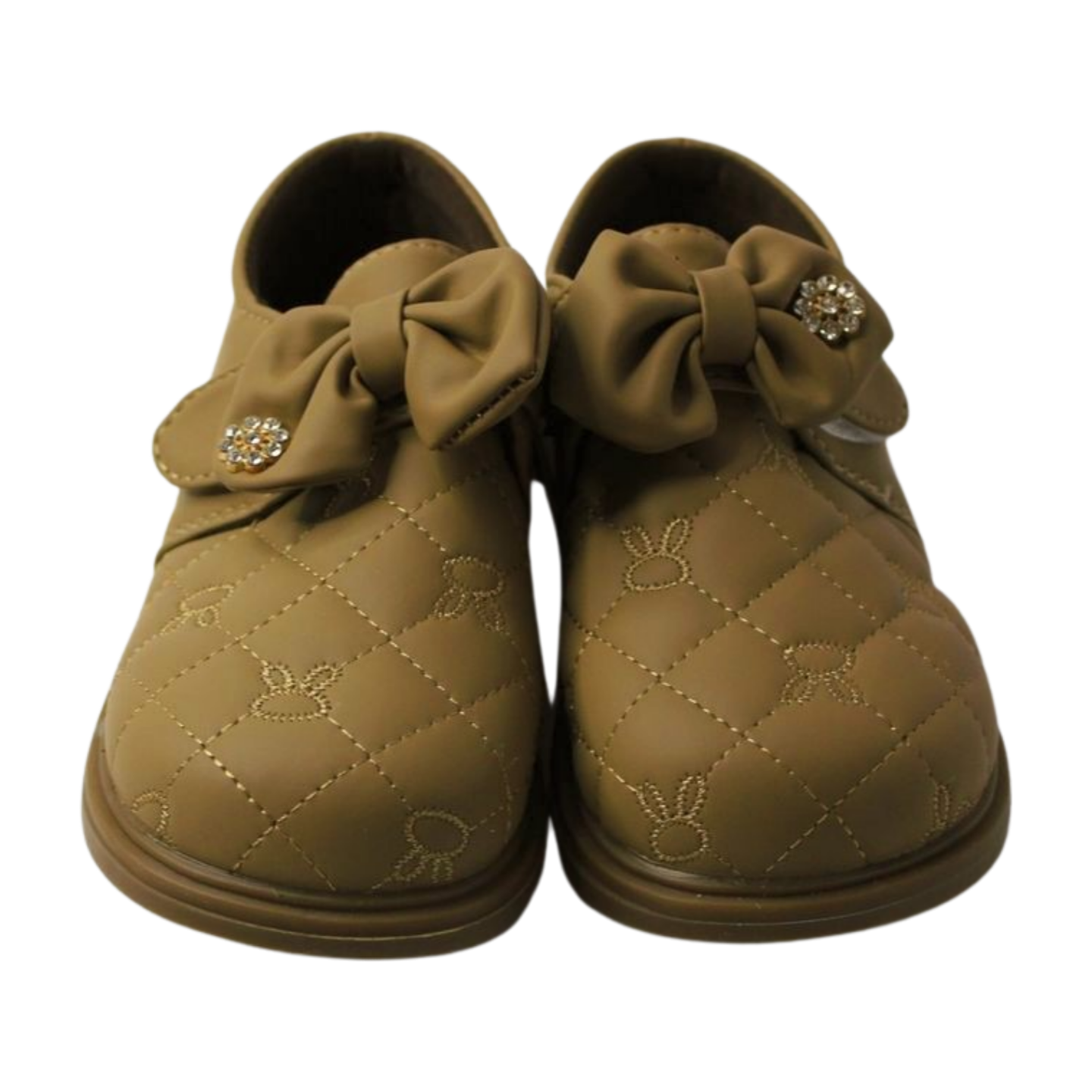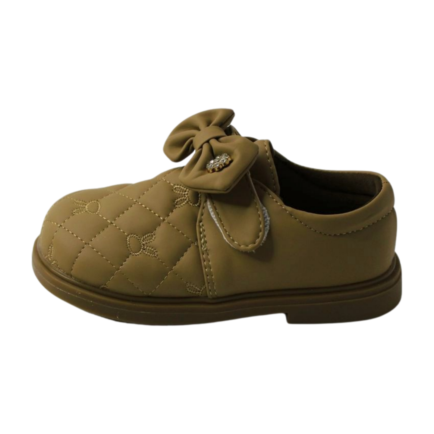 Introduce your child to refined style with the LILREDFOX Khaki Quilted Bow “Belly” Shoes. These elegant flats are the ideal choice for sophisticated party wear, perfect for fall/winter events, family gatherings, weddings, and formal celebrations. The design features a luxurious khaki upper with a chic quilted texture embellished by subtle embroidered motifs. The shoe is grounded by a contrasting brown, low-profile sole, enhancing its classic appeal. The standout feature is the perfectly formed oversized bow on the strap, which is beautifully secured with a sparkling rhinestone appliqué at the center, adding a touch of glamour. At LILREDFOX, we ensure comfort and safety are built into every elegant design. These formal flats feature a soft, comfortable midsole that provides excellent cushioning and support, guaranteeing cozy wearability through hours of celebration and play. Furthermore, for reliable safety, the shoe is equipped with a durable, low-profile, and non-slippery rubber sole. This robust outsole offers exceptional grip and stability, providing confidence for both you and your child on smooth or polished indoor surfaces. The single hook-and-loop strap, discreetly positioned beneath the bow, allows for quick adjustments and a secure fit. Choose the LILREDFOX khaki quilted bow shoes for the perfect blend of traditional charm, luxurious design, and reliable comfort.