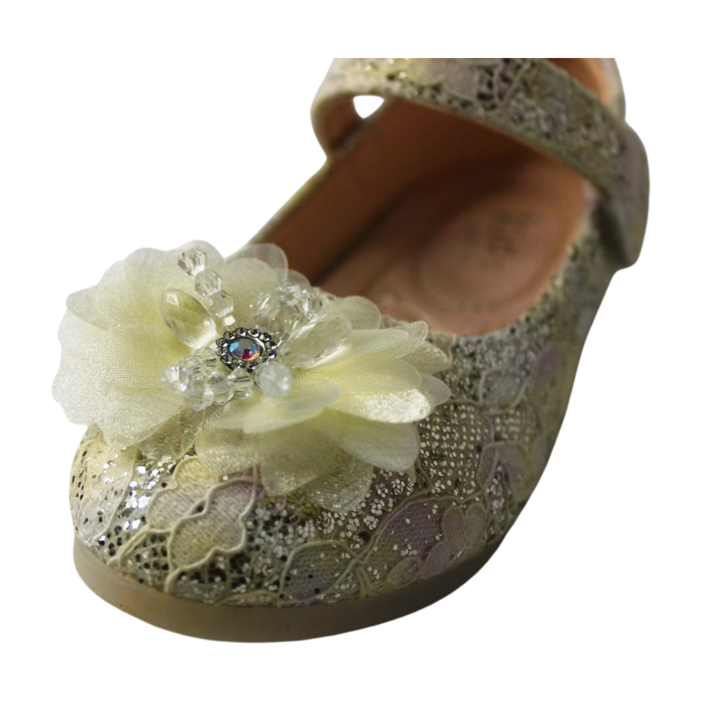 Gold Lace Flower Mary Janes Ballerina | Easy Velcro