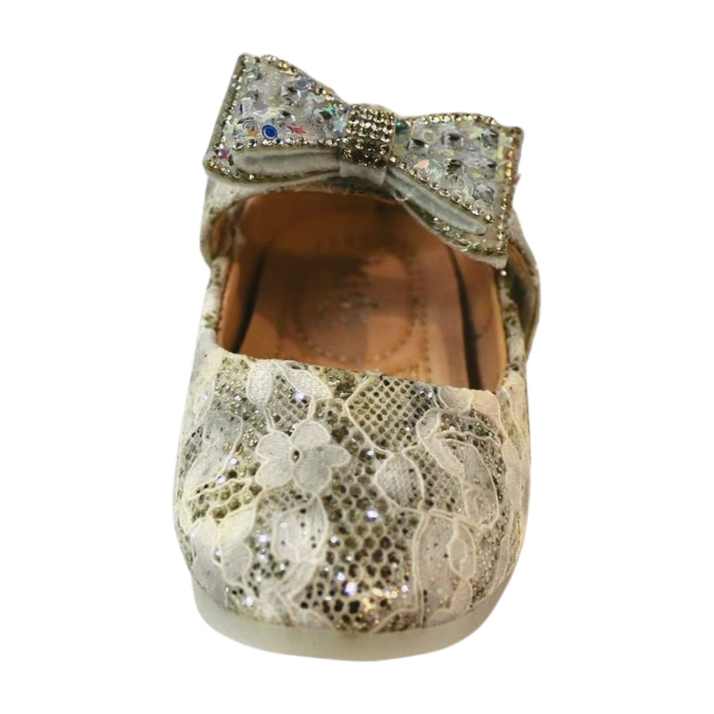 Let your child make a memorable entrance with the LILREDFOX Shimmering Silver Lace & Crystal Bow Mary Jane Flats. These gorgeous “Belly” style shoes are designed as breathtaking party wear, making them the perfect statement piece for weddings, birthdays, holidays, and any grand celebration. The upper boasts a rich, shimmering silver glitter base, beautifully accented by an elegant white floral lace overlay. This intricate design provides a luxurious, textured look that sparkles brilliantly as your child moves. The single Mary Jane strap secures the shoe comfortably, while the highlight is the magnificent toe embellishment: a structured, oversized bow that is completely encrusted with multi-faceted, iridescent crystals and rhinestones for unparalleled glamour. At LILREDFOX, we guarantee this dazzling style is paired with essential comfort and safety for active kids. These stunning flats feature a soft, comfortable midsole with a padded insole, providing gentle cushioning and necessary support for long hours of dancing and playing. Furthermore, safety is paramount: the shoe is completed with a durable, low-profile, and non-slippery rubber sole. The unique outsole features a charming bow-patterned tread for reliable traction, giving you peace of mind that your little one will maintain stable footing on smooth event floors. The hook-and-loop strap, cleverly placed under the bow, allows for quick adjustments and a secure fit. Choose the LILREDFOX lace and crystal bow flats for the perfect blend of luxurious style and reliable comfort.